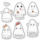 Halloween cute kawaii ghost custom cut vinyl stickers with a funny phrase at the bottom.