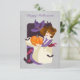 Halloween cute witch with pumpkin Jack o Lantern and witch hat.