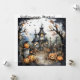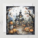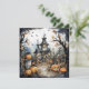 Jack-o-lanterns look on as three skeletons dance in front of a haunted house on this cute and fun Halloween Party invitation. The back is left plain, with plenty of space for your text.
