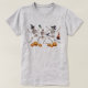 Halloween dancing skeletons with witches hats and broom, pumpkins, and bats