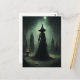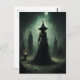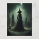 This art print features a solitary witch, silhouetted against a misty, enchanted forest under the glow of a full moon. Her flowing robes and pointed hat evoke the essence of gothic fantasy, while the shadowy towers in the background add to the atmospheric allure of the scene.