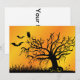 Halloween scene with orange background. Includes bats, jack-o-lantern, and tree. www.giftideas505.com