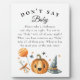 Halloween "Don't Say Baby" Baby Shower Game Poster Plaque
