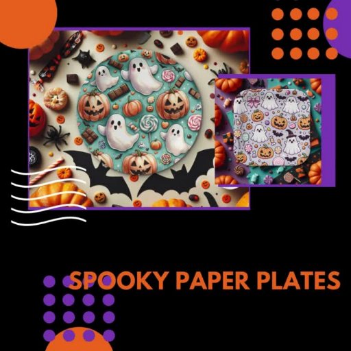 Halloween ghosts, jack-o-lanterns, witches hats and candy on an orange background.