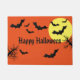 Halloween door mat shown in orange with a bats and moon print. Customize this mat or buy as is.