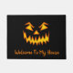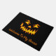 Halloween door mat shown with a scary pumpkin face print.