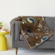 A quality printed throw has its advantages. This is a much finer weave throw than its loopier cousins, and though lighter, it is worth the investment for custom room accessorizing. The back is much prettier than the typical brown, and the fringe on the long sides very vivid, the selvage nicely done. Before photographing, I washed the throw in cold water, delicate, with a thicker woven throw the same size. On tumble dry low, this throw was dry in half the time as the other. This is a very practical quality if you use throws for furniture covers or to wrap up in frequently. The sleekness of the fabric makes it a great layer for accenting or protecting without the feeling of sitting on too much stuff. Perfect for napping or when you feel a light chill coming on. The color printing is beautiful and on this fabric, matched the design and color of my Photoshop image. This is an advantage for blending room fabrics and colors. The fringe on the short sides prints the colors from the design image and therefore varies from the side fringe. I streaked a white fractal line through the plaid pattern to give the illusion of weaving. This printed as crisp as an illusory thread, and put some white in the short side fringe, showing another advantage of print vs loomed- for artistic purposes, line lines, detail, and color integrity can be planned and preserved. My loomed throws have color limitations and more of a needlepoint texture. Print throws reproduce an exact image. The throw felt a little stiff straight out of the package, but this went away in the first delicate wash. Of course I searched the wash water for ink or bleeding and there was none.