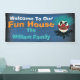 Welcome your neighbors, family and friends to your own Halloween Fun House. Featured is a grinning, evil, crazy, and scary clown. Halloween banner sign is perfect for displaying in your yard or your Halloween party or dance. Customize this banner with your own text message.