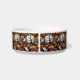 This is a heavy, durable bowl decorated with Tibbies of many colors, the perfect size for hungry/thirsty Tibs. The design is interesting and printing clear.