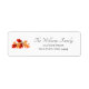 Halloween fall return address label with red and orange leaves. Black lettering can be customized with your own information. Great for sending Halloween and autumn Cards to your friends and family.