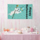 This cloth event or holiday decoration banner is a blue green colour covered in little black stars with a white fancy ghost wearing a blue top hat with gold ribbon holding a black cane topped with a golden skull. Customise the Happy Halloween text with the template.