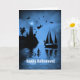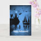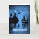 A nautical themed Happy Halloween card. Witches and ravens, mermaid and headless horseman, with a sailboat and lighthouse. Add a couple of headstones, black cats and an owl! A very fun coastal, ocean, seaside type Halloween card.