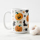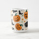 Celebrate the spooky season with this festive Halloween mug! Featuring a playful design of orange pumpkins with carved faces, black bats, stars, and small flowers on a white background, this mug is perfect for sipping your favorite beverages during Halloween. Whether you’re enjoying a hot cup of cocoa or your morning coffee, this mug adds a touch of Halloween magic to your drinkware collection. 🎃🦇