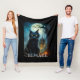 Fleece blanket is shown in a color of black with a spooky Halloween black cat print.