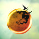 Halloween flying witch on gold full moon spooky window cling
