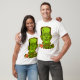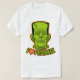This Halloween t-shirt playfully pays homage to the Frankenstein monster with a green and orange illustration of the movie creature and the text: I Love (heart) Frankie.
