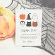 A modern Halloween birthday design with a pumpkin, a vampire, a witch's hat, a black cat, a ghost, and a werewolf illustrated in a simple drawing style with spooky typography. A birthday thank you card to match our "Halloween Friends Cute Modern Boy Birthday Party" design. Browse the collection linked on this page for matching items or visit our store for more Halloween birthday party designs.