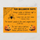This spooky looking postcard with a spider hanging from a web and two scary pumpkins has fun facts about Halloween. Perfect for kids and adults.