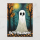 Halloween Ghost Boo Creepy Pumpkin Forest Postcard
