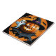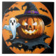 Halloween ghost floats beside a carved pumpkin ceramic tile