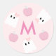 Halloween Ghost Girl & Pumpkin Pink Monogram Classic Round Sticker