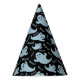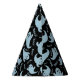 This party hat is shown in a black and ghostly blue colors with a Halloween ghost print.