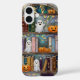 Cozy and charming, this phone case features a Halloween bookshelf filled with books, cute ghosts, and glowing pumpkins in a stained-glass–inspired design.