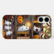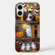 Cozy and magical, this phone case features a charming Halloween bookshelf scene with glowing candles, cute ghosts, pumpkins, and a playful black cat in a stained-glass–inspired design.