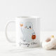 This adorable ghost is ready to celebrate Halloween in style! With a drink in one hand and a sweet pumpkin in the other, this design combines tenderness and fun. Perfect for parties, meetings with friends or as a gift for those who love the spooky but cute. The perfect touch for a cup, in this witch season.