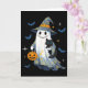 Halloween Ghost Witch Holding Black Cat Funny Hall Card