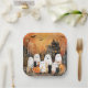 Halloween design with happy ghosts, black cats, bats, pumpkins, and haunted house. Happy Halloween!
