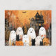 Halloween ghosts, black cats and bats, postcard