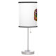 The lamp looks exactly like the picture, bright and colorful. The lamp shade is plastic not what I expected, however I love it! The printing is clear and the name can easily be read.