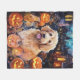 Halloween Goldendoodle With Pumpkins Scary Fleece Blanket