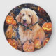 Halloween Goldendoodle With Pumpkins Scary Large Clock