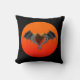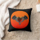 Halloween Goth Orange Heart & Bat Wings Pillow