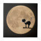 Halloween gothic black cat with full moon tile