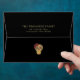 Day of the Dead Gothic black envelope, with a black and gold design and a sugar skulls pattern on the inside. On the back flap you add your own text for a return address. A great addition to your Halloween or Die de los Muertos invitations and greeting cards.