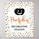 PUMPKIN DECORATING STATION sign features a cute orange, black & gold glitter confetti design for your Halloween themed party.