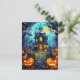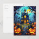 This awesome postcard features a Halloween themed haunted house in the Fall season.