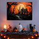 Step into the eerie magic of Halloween night with this hauntingly beautiful artwork. A crooked old house glows with a mysterious orange light beneath a looming full moon, while twisted trees and shadowy paths create the perfect gothic atmosphere. The fiery sky sets the stage for an unforgettable spooky scene—capturing both the fear and enchantment of Halloween. Perfect for adding a dramatic touch to your seasonal décor, this wall art makes a striking centerpiece for anyone who loves haunted houses, dark forests, and the thrill of October nights.
