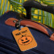 Custom holiday luggage tags with cartoon style pumpkin for Halloween.