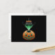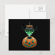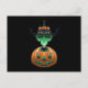 Halloween Horror Punk pop culture fantasy art green zombie monster with Jack o Lanterns, pumpkins, and black cat wearing a skull mask.