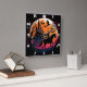 A witch rides a majestic horse against a glowing orange moon, surrounded by bats and silhouettes of a haunted castle, embodying the spirit of Halloween.