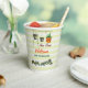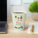 A fun Halloween personalized paper cup for a Halloween housewarming party. It features watercolor paintings of hanging plants (including a jack o'lantern) and a row of gremlin shoes. Matching items available.