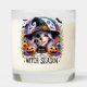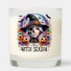 Add some Halloween flair to your home or room decor with this scented jar candle with the words "It's Witch Season" along with a colorful graphic of a half Skeleton and half Witch face wearing a Witch Hat surrounded by pumpkins, flowers, bats and a moon in the background in Purple, Orange and Green colors. Great for your next girls night, book club meeting, halloween party at home, work or get-together add to your party food and goodies. Look for "It's Witch Season" collection for coordinating supplies.