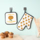 One cute oven mitt with jack-o-lantern pattern and one pot holder with jack-o-lantern you can personalize on top and bottom.