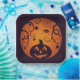 Happy Halloween circle badge with jack-o'-lantern smiling pumpkin