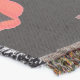 A quality printed throw has its advantages. This is a much finer weave throw than its loopier cousins, and though lighter, it is worth the investment for custom room accessorizing. The back is much prettier than the typical brown, and the fringe on the long sides very vivid, the selvage nicely done. Before photographing, I washed the throw in cold water, delicate, with a thicker woven throw the same size. On tumble dry low, this throw was dry in half the time as the other. This is a very practical quality if you use throws for furniture covers or to wrap up in frequently. The sleekness of the fabric makes it a great layer for accenting or protecting without the feeling of sitting on too much stuff. Perfect for napping or when you feel a light chill coming on. The color printing is beautiful and on this fabric, matched the design and color of my Photoshop image. This is an advantage for blending room fabrics and colors. The fringe on the short sides prints the colors from the design image and therefore varies from the side fringe. I streaked a white fractal line through the plaid pattern to give the illusion of weaving. This printed as crisp as an illusory thread, and put some white in the short side fringe, showing another advantage of print vs loomed- for artistic purposes, line lines, detail, and color integrity can be planned and preserved. My loomed throws have color limitations and more of a needlepoint texture. Print throws reproduce an exact image. The throw felt a little stiff straight out of the package, but this went away in the first delicate wash. Of course I searched the wash water for ink or bleeding and there was none.