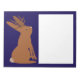This awesome notepad features a digital art image of a Jackalope, a mythical creature, also known as a cryptid, that is rumoured to live in the woodland. The animal is a mixture of a jackrabbit and a deer that is the official mythical creature of the state of Wyoming. My design has the brown animal standing upright with its ears up as it gazes upwards. It has dark brown antlers on its head. The cheeky Jackalope has a reputation as a trickster, making it the perfect animal for some Halloween trick or treat fun.